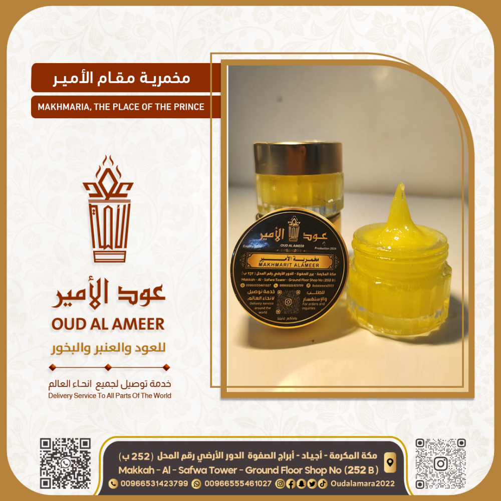 منتج فاخر، يعكس الجودة والتميز، كريم مخمرية مقام الأمير هي من أفضل أنواع الخمريات المتاحة. لأن عطرك يتحدث عنك... اختر التميز مع عود الأمير.