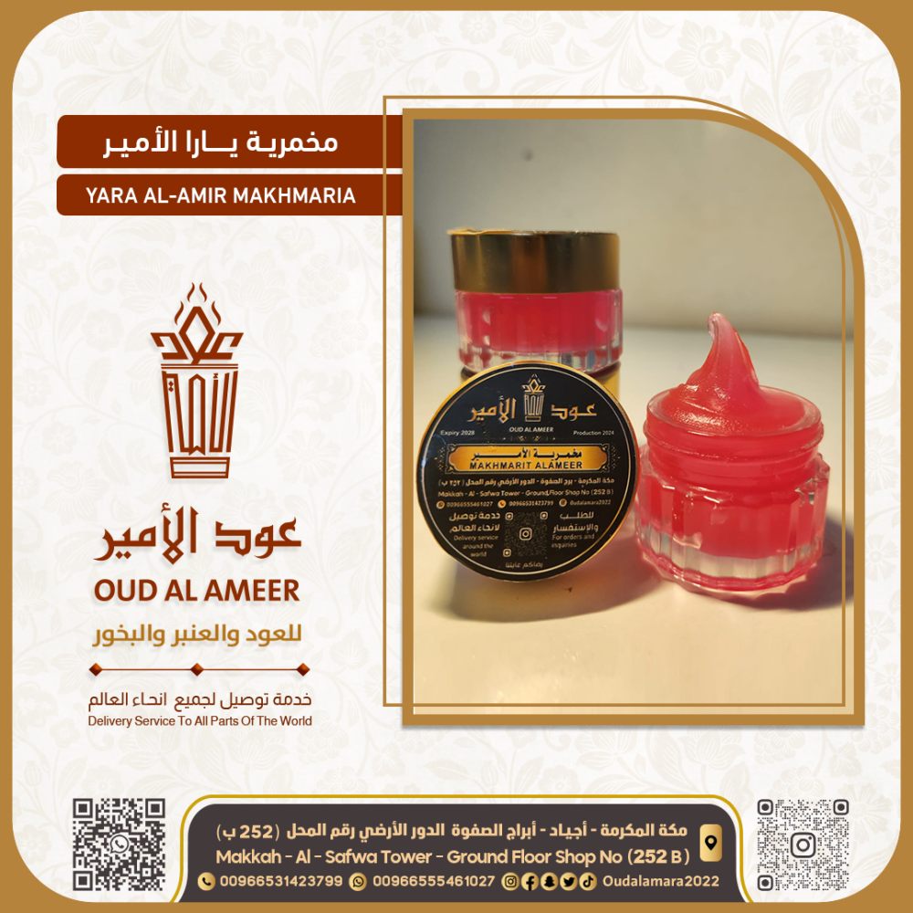 تأتي مخمرية يارا الأمير لتعكس الأناقة والأنوثة من خلال رائحتها الهادئة والناعمة التي تأسر الحواس. تتميز هذه المخمرية بتركيبة فريدة تجمع بين عبير الباتشولي القوي والمسك الفاخر، مما يجعلها خيارًا مثاليًا للنساء اللاتي يفضلن العطور الراقية التي تدوم طويلًا وتترك انطباعًا مميزًا. لأن عطرك يتحدث عنك... اختر التميز مع عود الأمير.